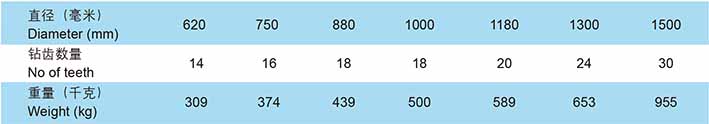 切割環(huán)可以選用BR或BH型鉆齒(也可以選用其他型號鉆齒)